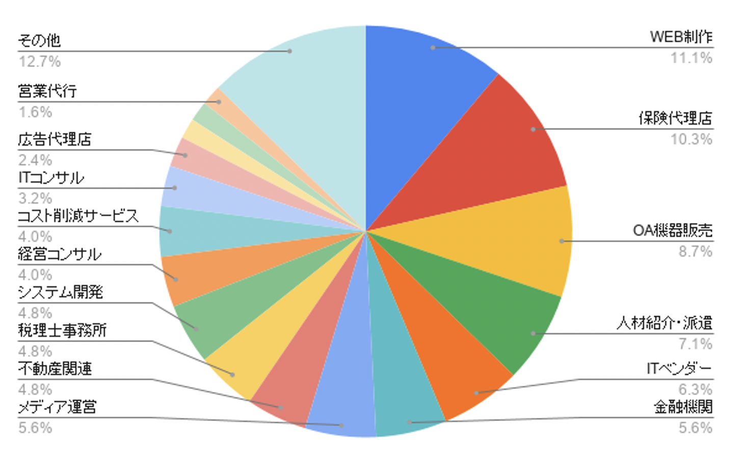 「中小零細企業」を顧客・営業先としている「あらゆる業種」の企業さまが導入し、成功されています。