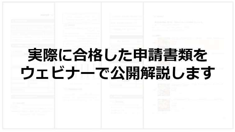 ウェビナー中に「実際に合格した申請書類」を公開解説します