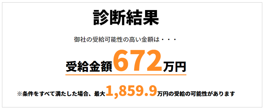 ・申請できる可能性がある「制度名や金額」「期待採択率」をその場で診断