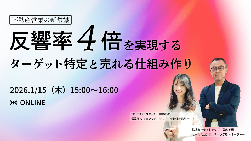 前半ではTRUSTART株式会社より、提供サービス「R.E. DATA」を活用し、単なる所有者情報ではなく 属性・物件状況・行動データなどから売却意向の高いオーナーを特定する方法を解説。