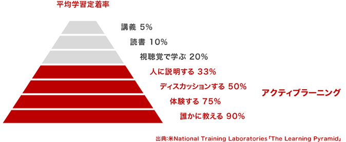 平均学習定着率が、講義の「5%」に比べて、圧倒的に高い「75%」を示しています。